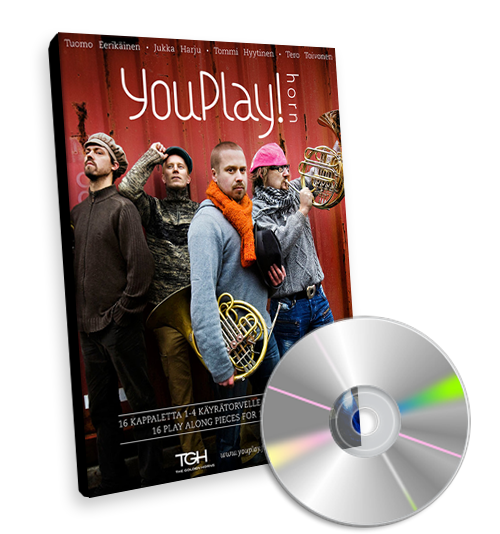 YouPlay! –book includes 16 compositions for 1-4 horns and a CD for play-along accompaniment. This enables you to create enjoyable performances alone or with all your horn player friends. YouPlay! –book aims to empower the young player by enabling fun and positive interaction with the audience, even with humour. YouPlay! –book tickles the learning brain with mental and physical exercises alike to facilitate the learning of the music in the book. YouPlay! – brings the classical horn closer to electric band instruments and thereby removes prejudices between musical styles. |
